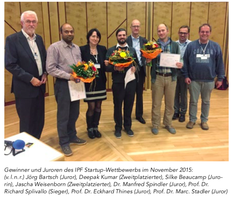 Nov. 2015 Gewinner und Juroren des IPF Startup-Wettbewerbs im November 2015